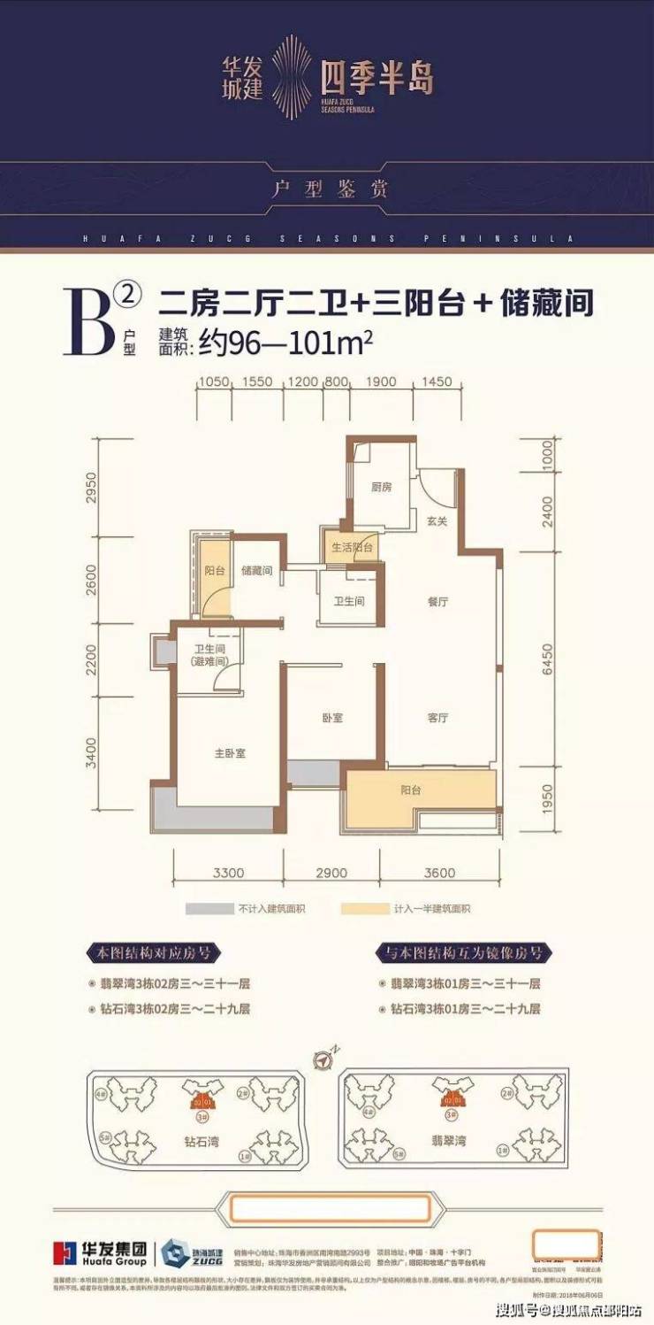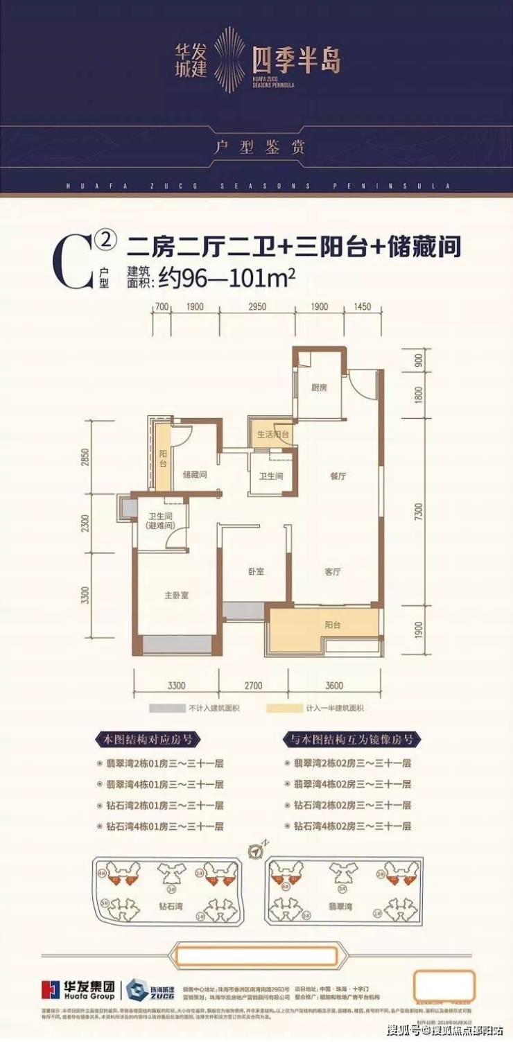户型位置:钻石湾2栋01/02户型,总层高31层