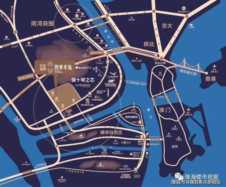 华发城建.四季半岛位于十字门通航路与景秀路交汇处。从区位来看,项目毗邻横琴大桥、十字门华发商都(在建)、十字门轻轨站(在建)、珠海国际会展中心等综合配套,未来不论是交通出行还是休闲娱乐都能得到较好的体验。