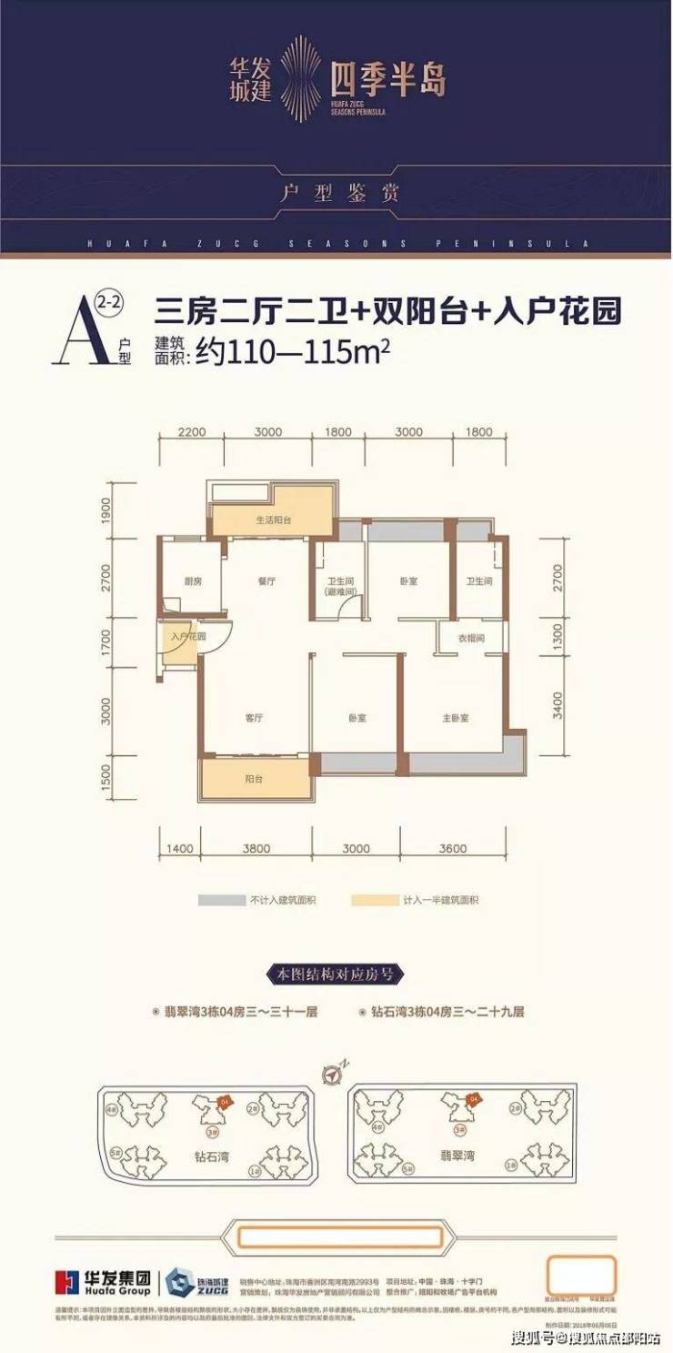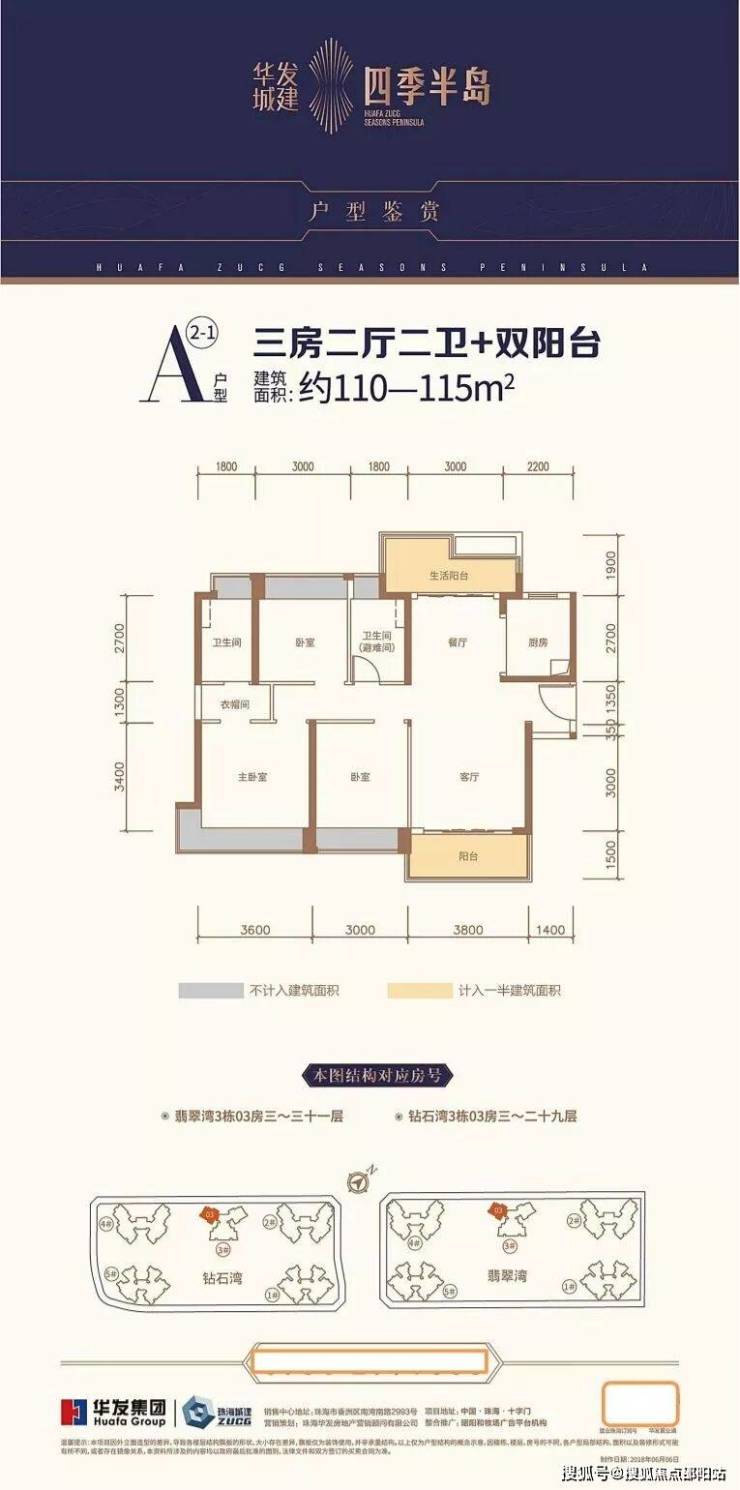 户型位置:钻石湾3栋01/02户型,总层高29层