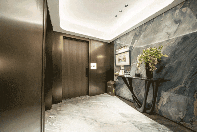 双开门电梯,带来往常大平层才会拥有的 独立入户+尊享电梯厅空间,形成归家仪式感与功能性的扩展。