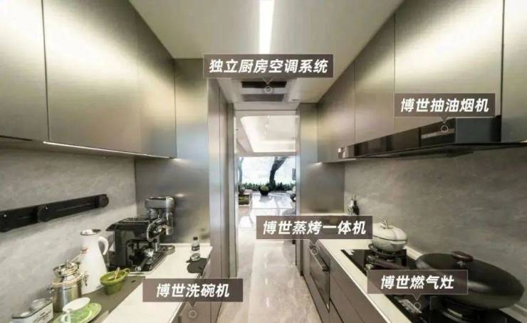 不仅如此, 全屋预设了百朗新风系统和日立VRV中央空调,厨房更配备独立空调系统,确保室内各个角度空气质量,能一直保持在舒适区间。