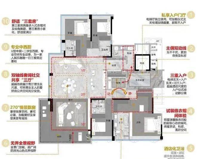 关键是,它还根据不同家庭成员的起居习惯,打造出天河同等面积段罕见的“多动线洄游系统”。
