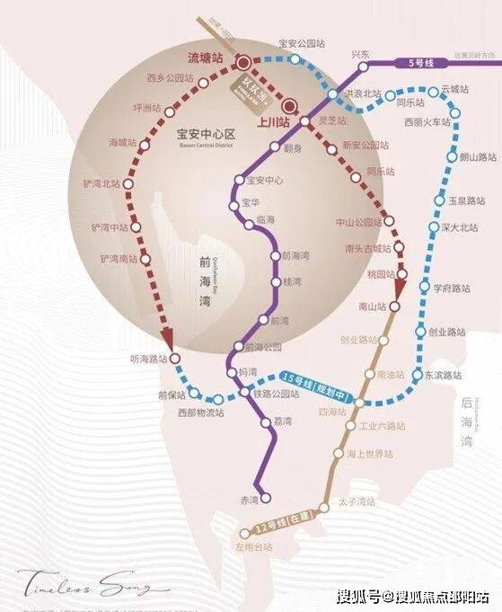 项目周边目前已开通地铁5号线,周边规划有12号线(在建)上川站离项目仅400m、15号线流塘站(在建)离项目仅700m。地铁12号线预计将于明年年底建成通车,并与15号“超级黄金线”在流塘站交汇,实现了深圳重要经济总部人才的流通,通过地铁3站到宝中,6站到南山,10站可达福田。开车出行通过新安四路转宝安大道,107国道15分钟可到前海宝中,连接北环、滨海、深南,20分钟可达南山,30分钟可达福田。