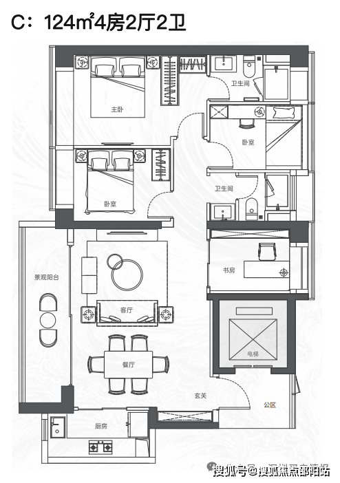 该项目将推出大约380套住宅,建筑规划包括2栋塔楼,其中高区采用4梯4户的设计,低区则为5梯5户,确保了每户都能享有独立电梯厅的配置。
