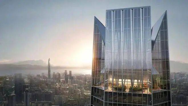 城脉中心摒弃流行的曲线,以独立塔楼和直线向天空延伸,简约、阳刚、优雅的形态致敬深圳向上进取的精神。超现代翼形立面楼体,雕刻多面棱角,造就凌空展翼之姿,更有30米高的独特塔冠设计,穿越云顶。