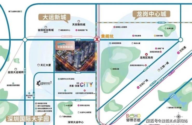 • 高效交通:地铁16号线黄阁坑站直连,风雨连廊无忧通勤,未来10/16/21号线三线交汇,3站大运枢纽换乘3/14号线和深大城际,30分钟达罗湖、40分钟达福田CBD,1小时达湾区;2分钟直上高速,武深、水官、深海高速互联,高效商务出行。