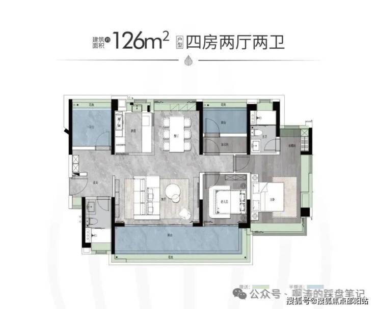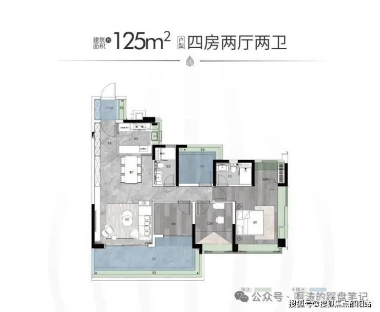 【户型面积】建面约125-142㎡四房两厅两卫/214-319㎡大平层