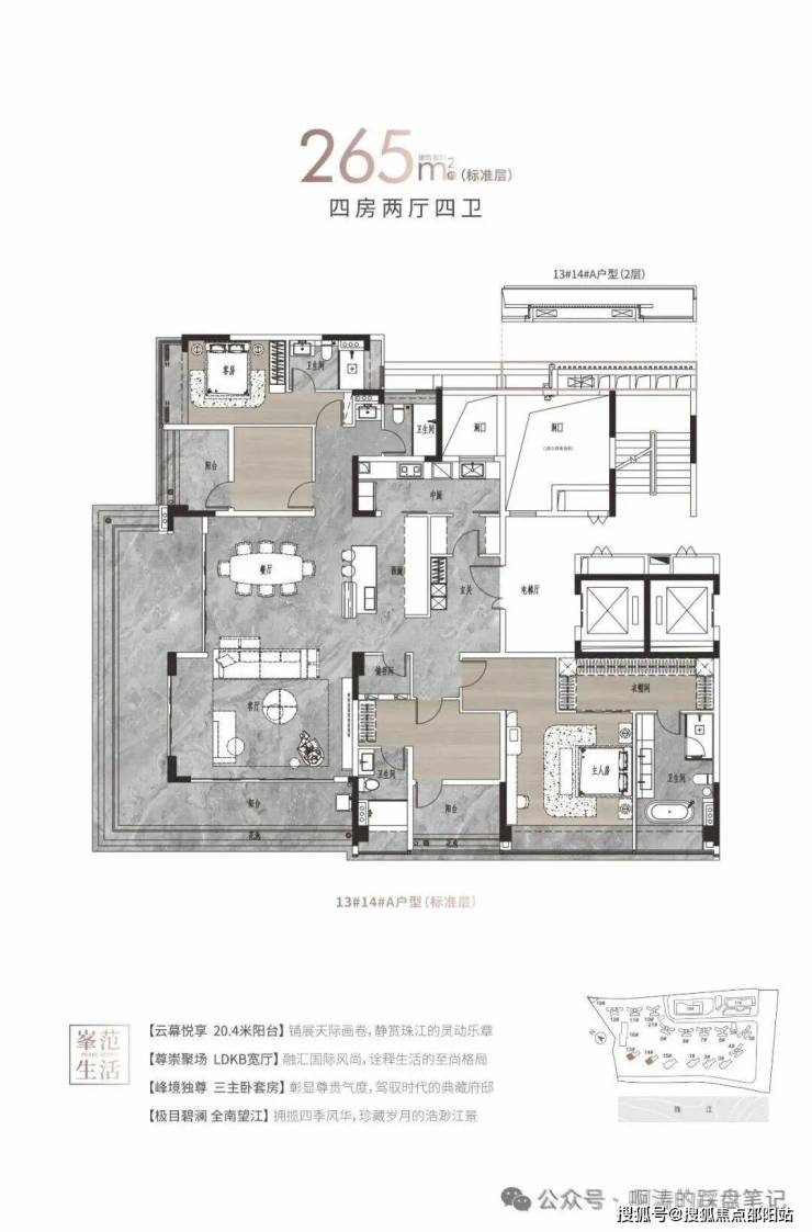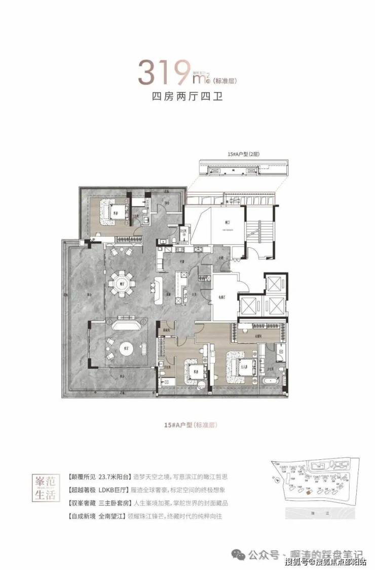 白云首个珠江大平层,125-142㎡南向江景4房,214-319㎡大平层,超高使用率,江景豪宅,市场罕有