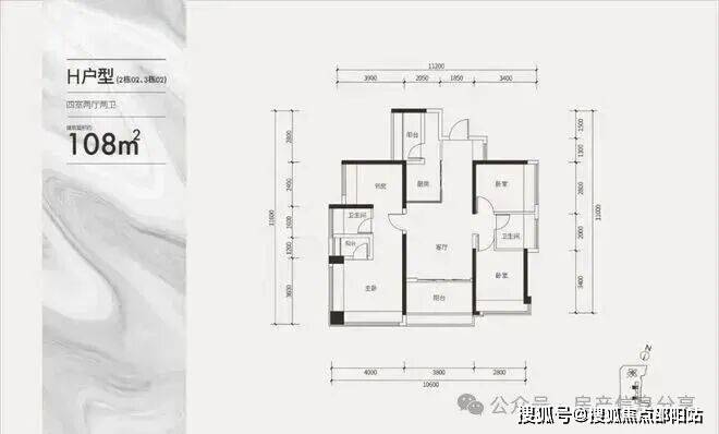建面约108㎡通透四房户型
