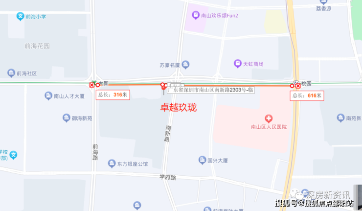卓越·九珑位于南山中心区,南新路和桃园路交汇处西北角,双地铁口1/12号线,离地铁1号线大新站约300米,属于区位好,交通便利以及商业配套完善的楼盘