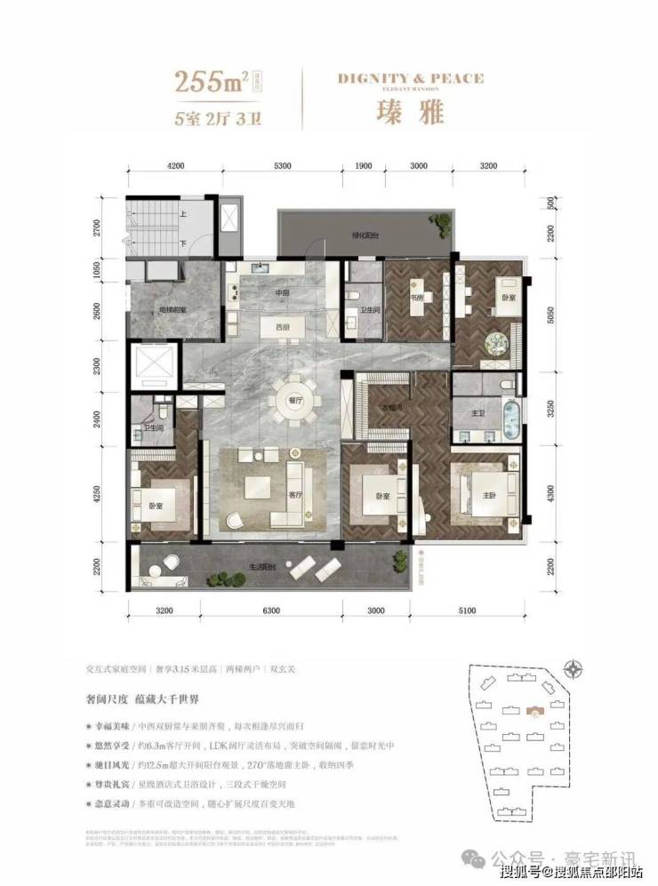 【瑧雅】5室2厅3卫户型,建面约255㎡