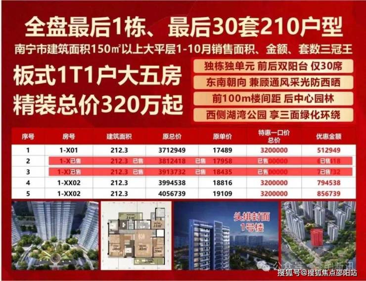 【在售楼栋】1号楼,最后一栋瞰湖揽园210㎡户型,南北通透板楼,独栋独单元,17F