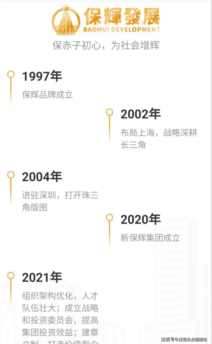 “保辉”品牌创立于1997年,以建筑行业起步,历经20余年的经营,新保辉企业发展有限公司现今已发展成为涵盖五大行业领域的企业性集团公司,新保辉集团业务板块包括房地产开发、基础设施投资建设、持有性物业运营、酒店投资、物业管理等,凭借雄厚资金实力、科学管理模式以及优良的服务团队,致力于创造优质的生活空间,为社会大众提供全方位、多维度的服务。