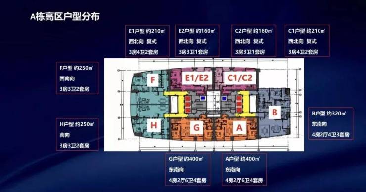 A座48层C2单位,建面约210㎡,3房2厅4卫3套房