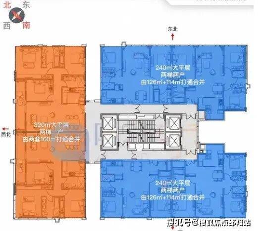 公寓户型为240㎡和320㎡的大平层,两梯一户或两梯两户设计,使用率高达76%,现楼豪装交付,层高3.1-3.4米,民水民电配置,物业管理费14.5元/㎡/月,服务对标香港高端豪宅标准。
