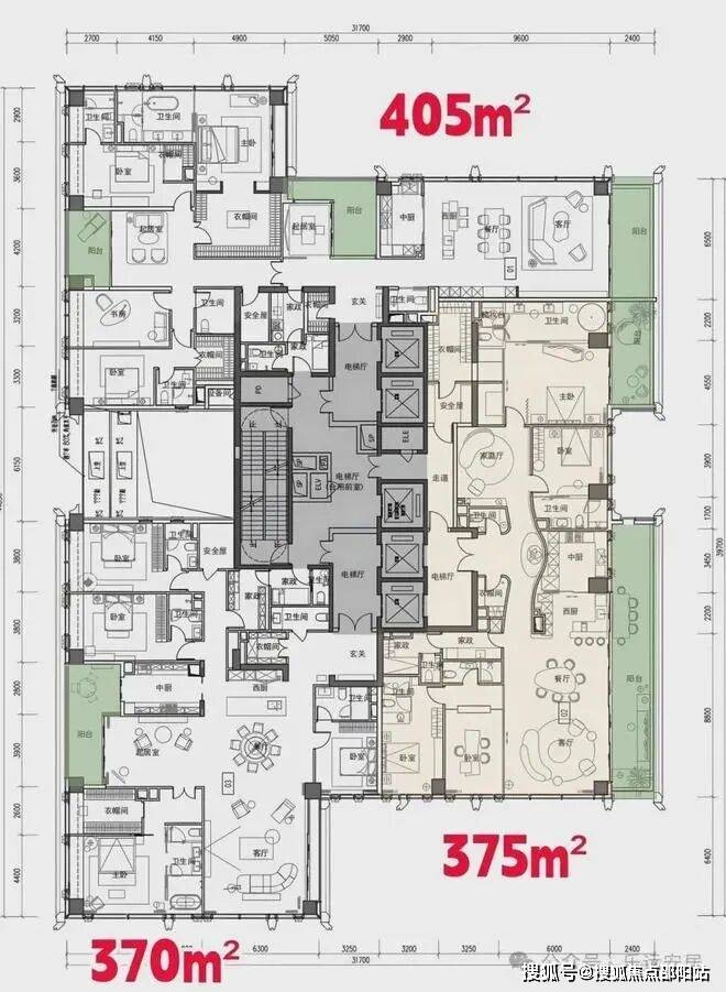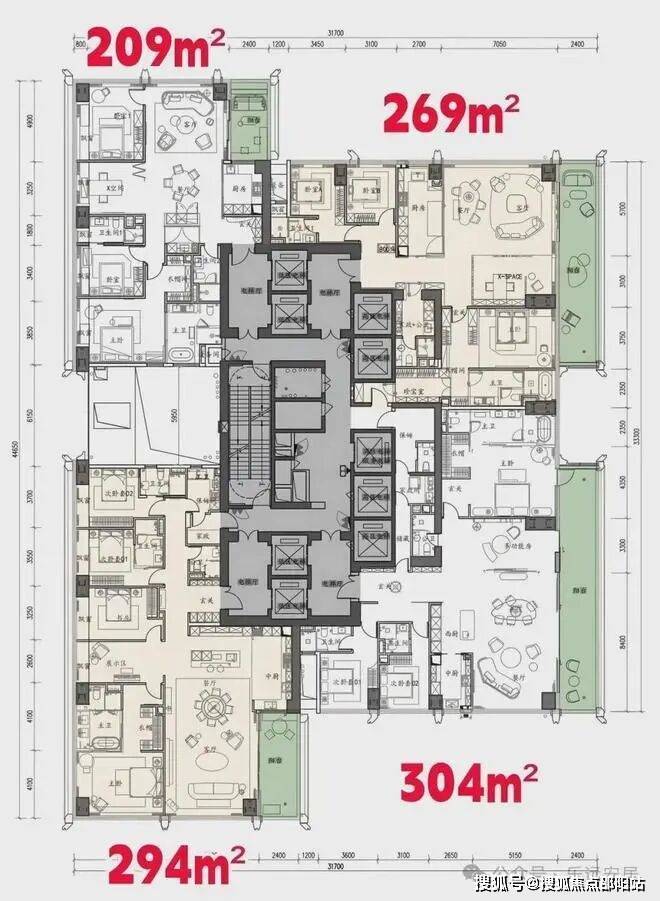 项目容积率7.59,限高250米,规划5栋超高层住宅,采用全玻璃幕墙设计,实用率高达92%以上,主力户型200㎡以上大平层。