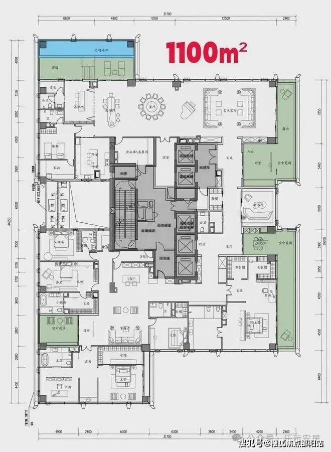 高层住宅的公区设计至关重要。本方案以内部庭院为中心,二层设人行天桥连接休闲区;三层规划户外花园和泳池