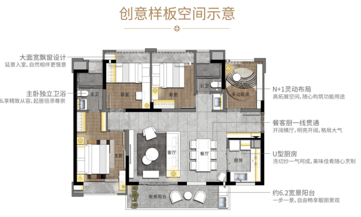 璞悦主打建面约89-125平户型,其设计,相较过去,也进行了大升级。