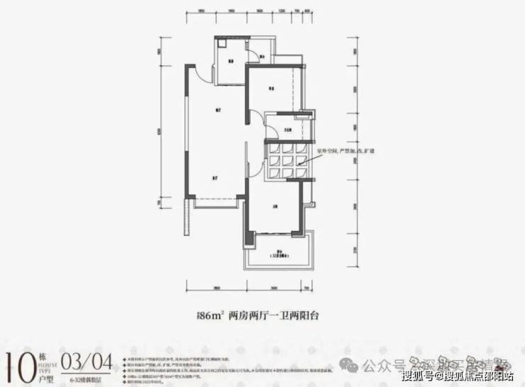 86平2房2卫(客厅开间3.8米)