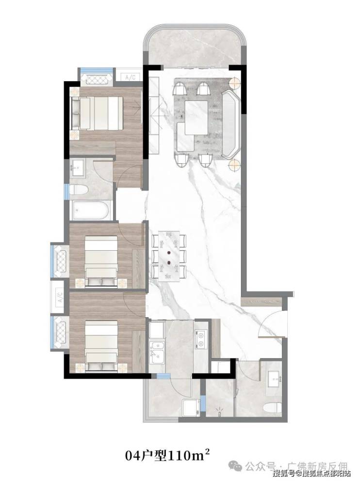 04户型:约110㎡,三房两厅两卫带主套