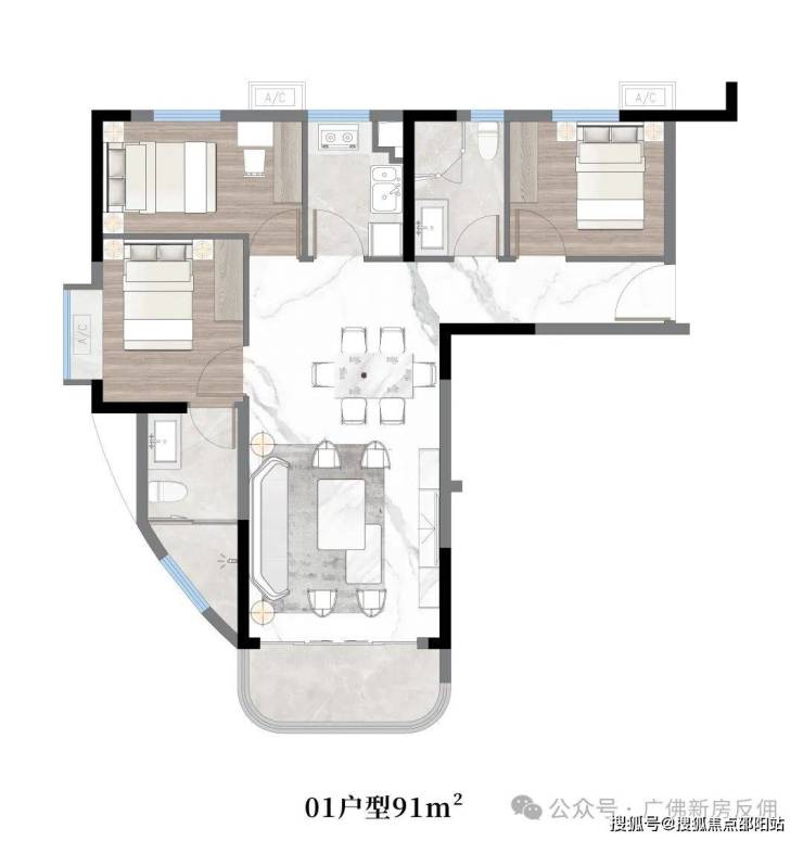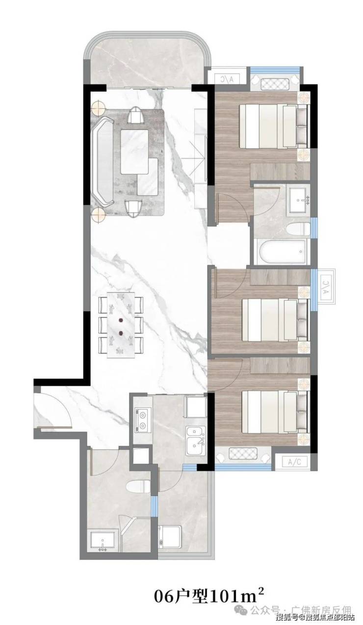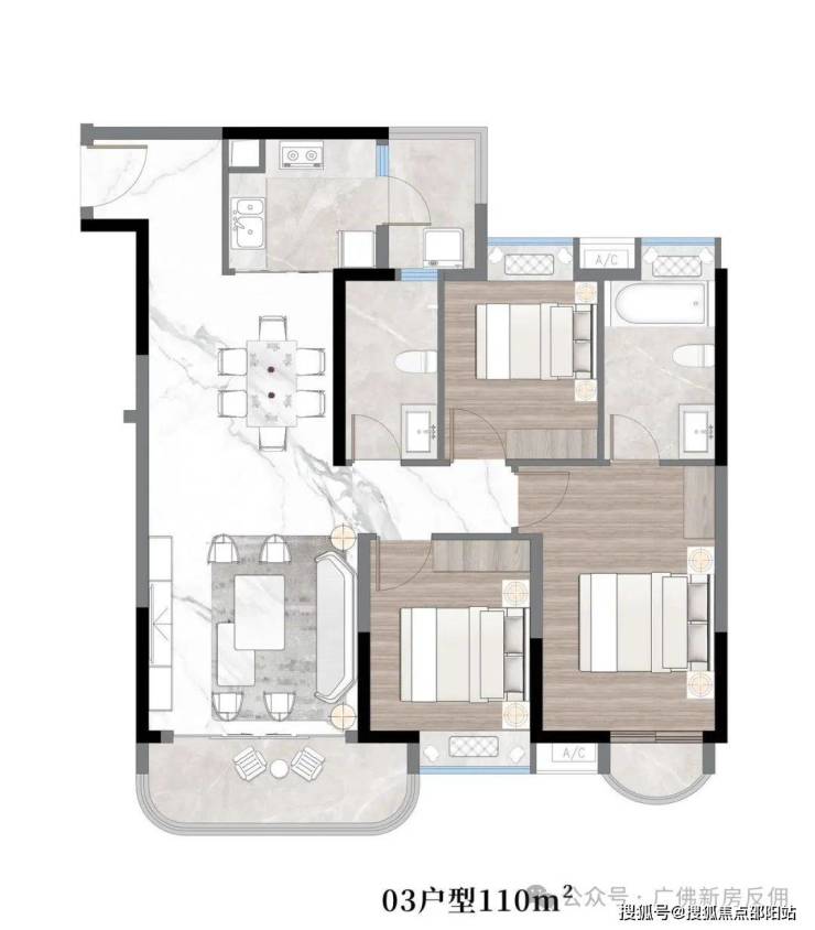 03户型:约110㎡,三房两厅两卫带主套