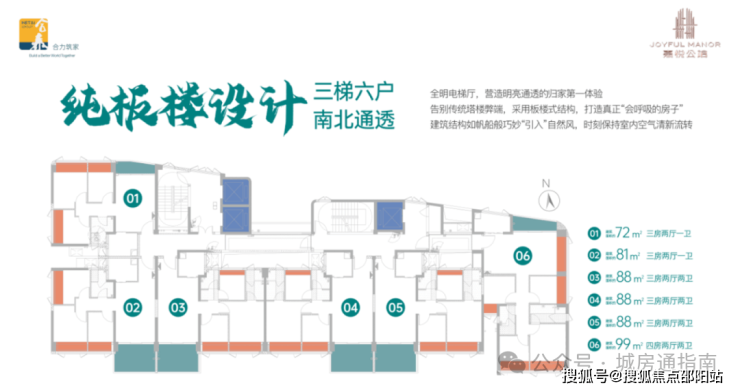 户型区间:72-99㎡三至四房,精装交付,实用率领先市场