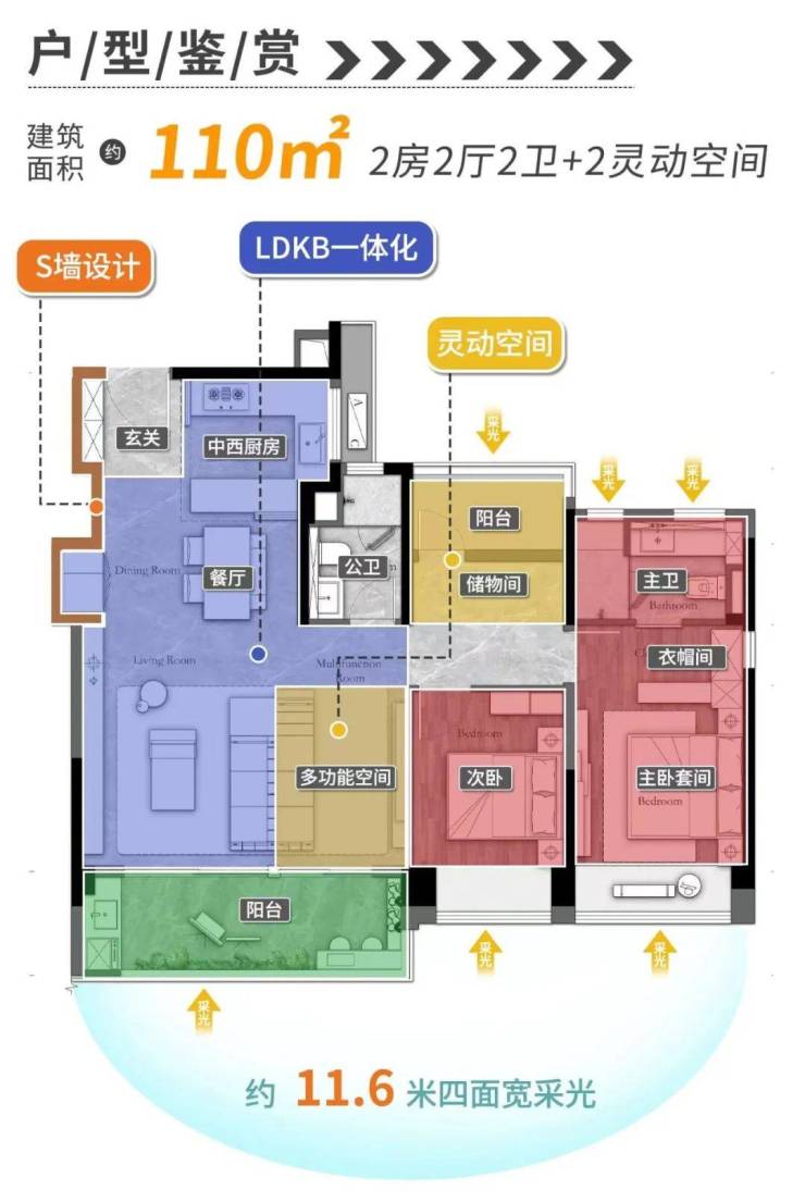 万科·瑧山府提供110-186㎡的多种户型,满足不同家庭的需求。其中,建面约138㎡的四房户型采用四开间朝南设计,通透性极好,主卧采用南北对流设计,保证通风与采光,且设计有飘窗,空间利用率高。所有户型都能享受到白云山的美丽景观,户内空间布局合理,适合家庭长期居住。