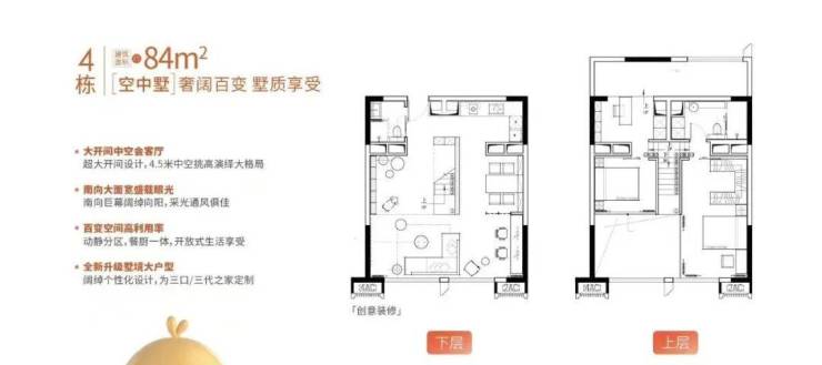 产品面积:30方、60方西北向;42方、84方东南/西南/东北向;有双钥匙和复式中空选择(带装修)