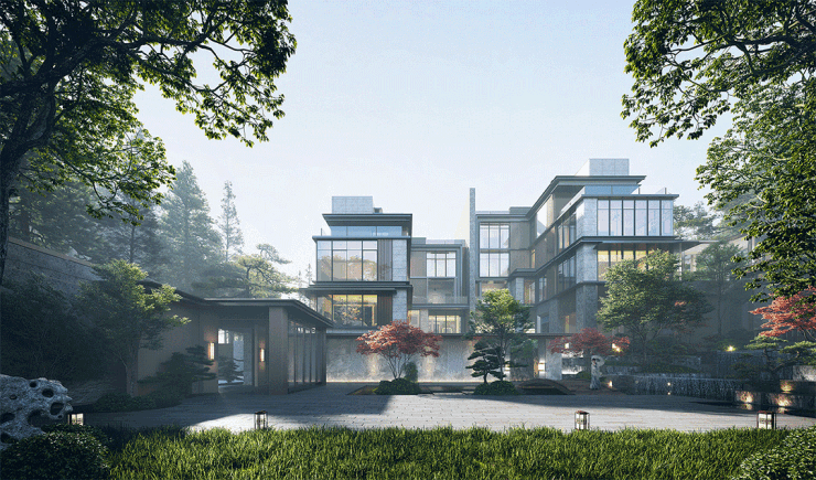 普通别墅外立面惯用石材、陶瓷等材料,保利·湖光里采用公建化外立面,材料以大面积玻璃搭配石材铝板为主,更轻盈、更现代、更时尚。