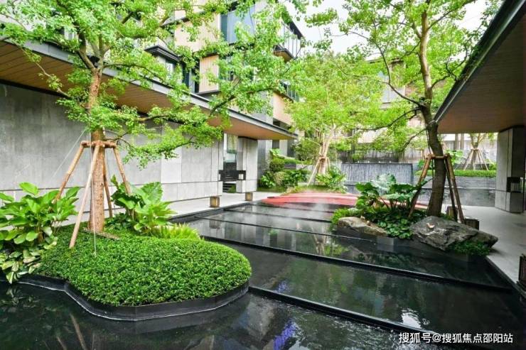 “流光水院”,依地形高差打造层次分明、色彩丰富的垂直景观,拾阶而上,一步一景一陶然。