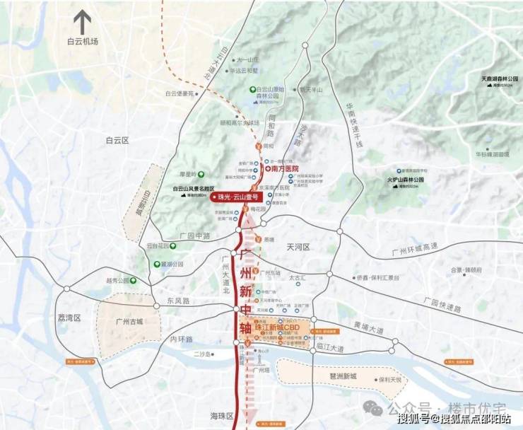 项目雄踞广州千年历史名山、国家级5A风景区-白云山主峰东麓,紧挨荷树林登山口,生态资源不可复得。云山东麓定位为生态宜居新城区,相比西麓更近天河,显现出“以东为贵”的姿态。