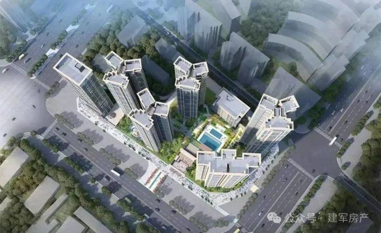 共规划建设7栋楼体,其中5栋为28-38层的高层住宅,共504户,均采用2梯4户或3梯4户的设计,另有1栋6层商业和1栋21层的办公产品,此外,小区内设有泳池配套。