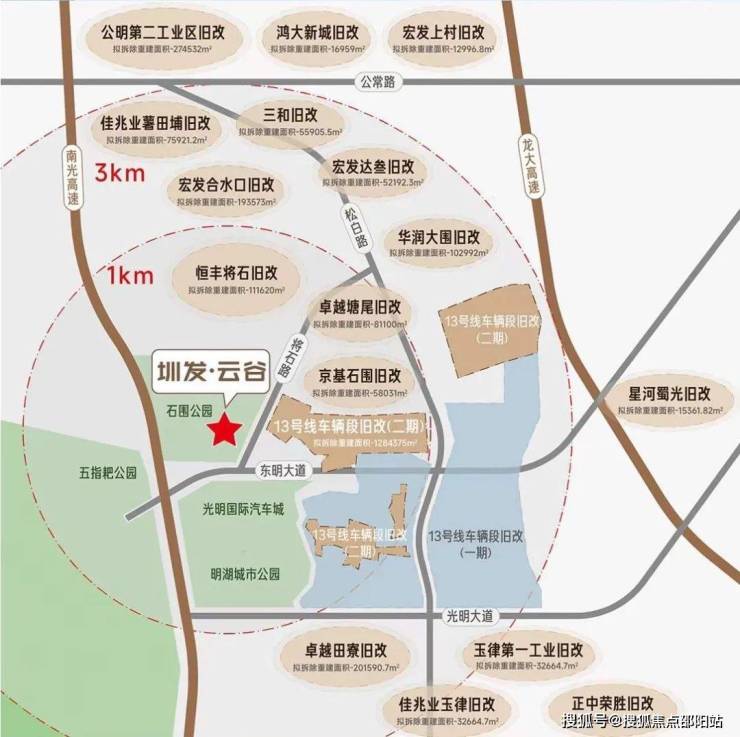 项目3公里范围内已云集约16个城市更新项目,紧邻光明区建区以来规模最大的巨无霸旧改——轨道13号线车辆段旧改(华润+宏发开发,一期2023年底入市),商业居住办公一体化,未来将被打造成为光明区西部片区新中心!