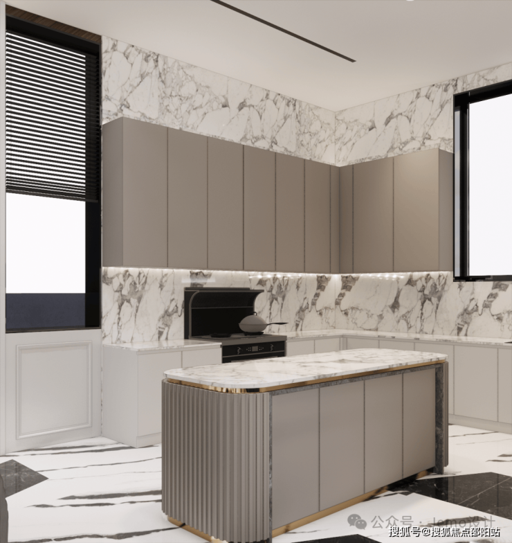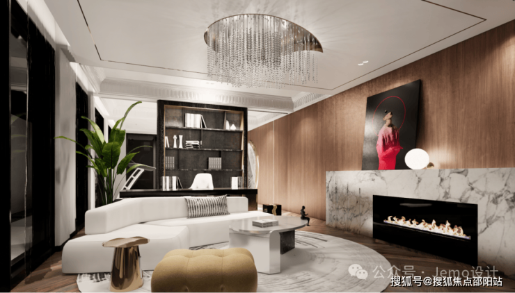The kitchen area is designed with a migratory flow line, centered around the island platform, allowing "taking→washing→cutting→frying→serving" to be in one flow line, avoiding a sense of enclosed space.The marble in the dining area paired with a light luxury chandelier showcases the high-end Italian style of light luxury, exuding a sense of ceremony.