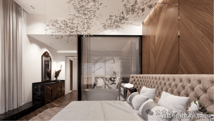 In the room, a glass partition was installed in the bathroom to maximize the sense of scale in the space; The glass cabinet door in the cloakroom, paired with metal handles, exudes an Italian sense of luxury. Paired with carefully selected bedding, curtains, sofas, and a series of soft furnishings, create a comfortable resting environment.