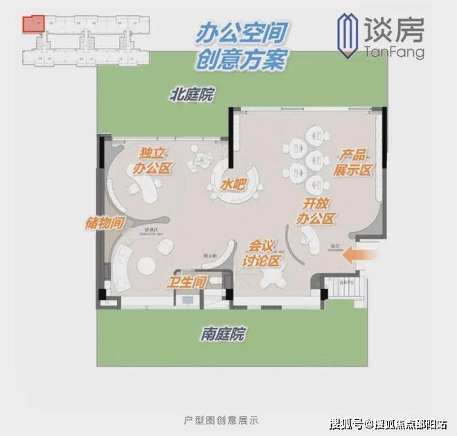 琶洲南TOD 325m²户型效果图首层庭院:办公室创意设计南面平层:住所创意设计