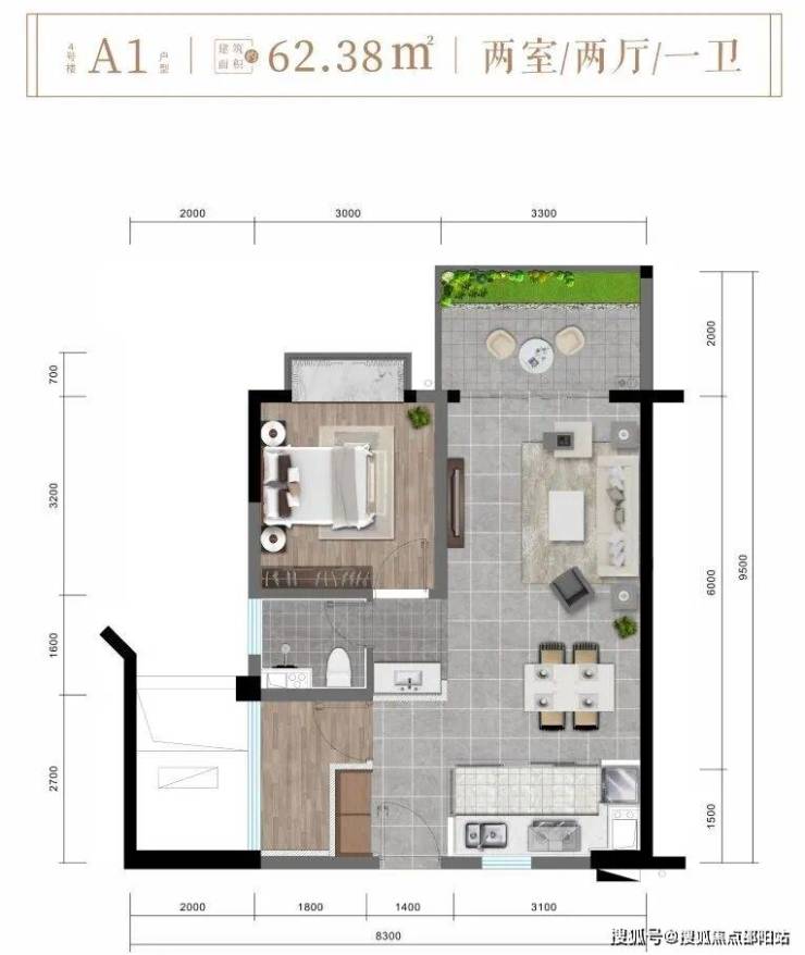✨A1户型约62㎡精致两房两厅一卫