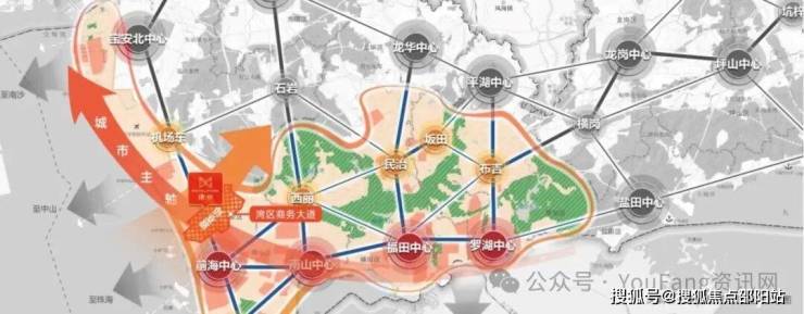 深圳城市主轴自罗湖、福田、南山一路向西迭代,4.0城市新中心落定前海宝中。