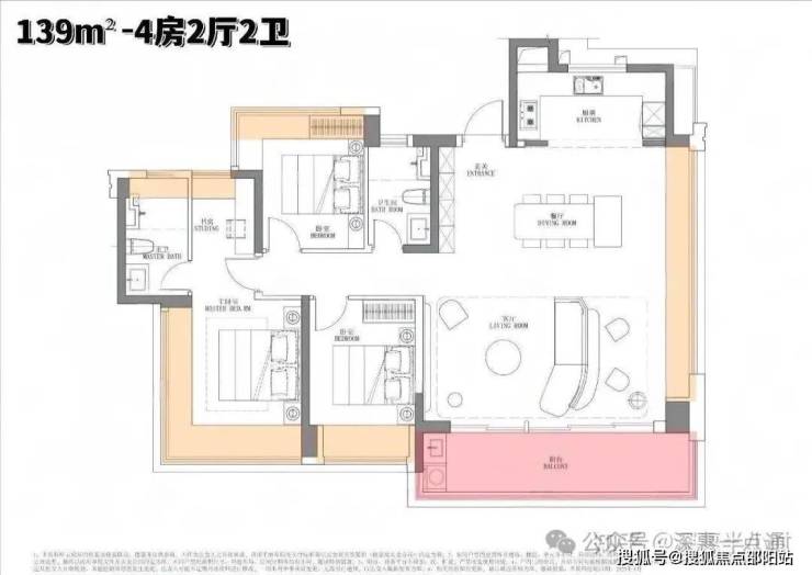 139m²的3+1房2厅2卫,折后总价713-826万/套,单价5.12-5.93万/m²。