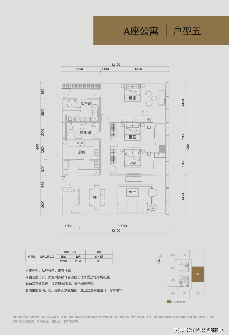 三房二厅二卫建筑面积约248-310㎡,共19套。