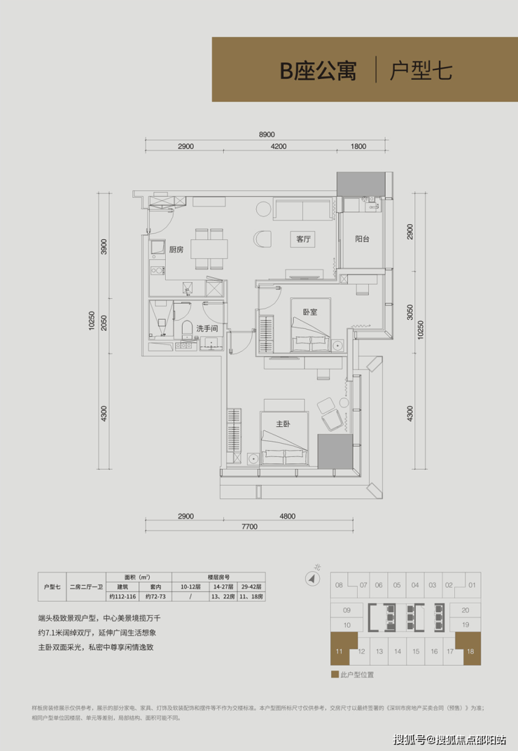 ▲建筑面积约112-116平,端头极致景观户型,中心美景静揽万千;约7.1米阔绰双厅,延伸广阔生活想象;主卧双面采光,私密中尊享闲情逸致。