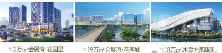 项目板块核心的深圳国际会展城规划超50万㎡商业综合体(含免税店、国际品牌首店),预计2025年逐步开业,将形成辐射大湾区的消费地标;一路之隔的冰雪主题商圈规划建面约10万㎡,预计在2025年开业运营,距离约2公里的会展湾·公园里(建面约2万㎡)已经开业,约5公里有当下沙井最好的商业万丰海岸城购物中心,及即将开业的山姆会员商店,壹方奥特莱斯购物中心。