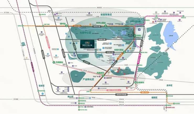 振业天境云庭位于光明区新湖街道光辉大道与华夏二路交汇处西南侧,南临安联尚璟府,北侧即是科学公园。