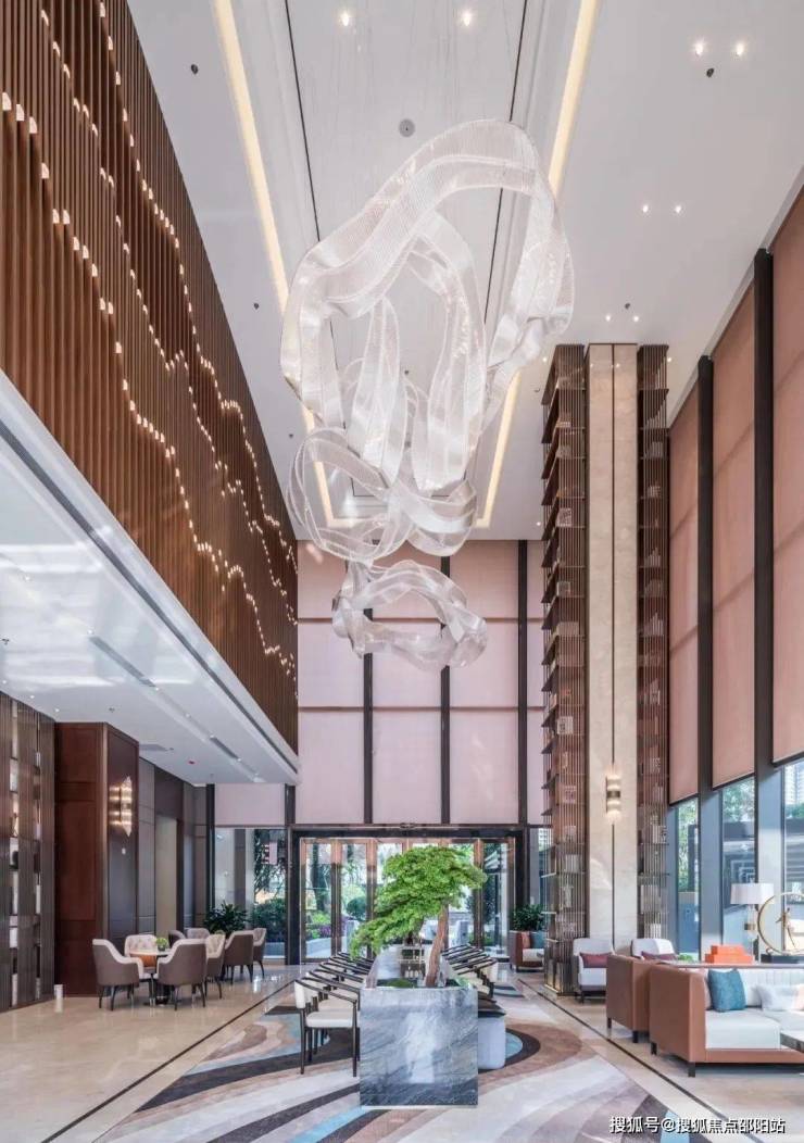 中国人的哲学是“礼”的哲学,在言语上、在行动中、在书卷里,更在门厅堂庭院落之间。华鸿·璟悦轩12米挑高主入户大堂,以国际视野匠心打造出极具新中式韵味与奢华现代感结合的城市会客厅接待中心。豪华水晶灯、大型书柜、豪华沙发等,为尊贵生活营造匹配的仪式感,让业主归家或亲友来访尽享私家礼遇。