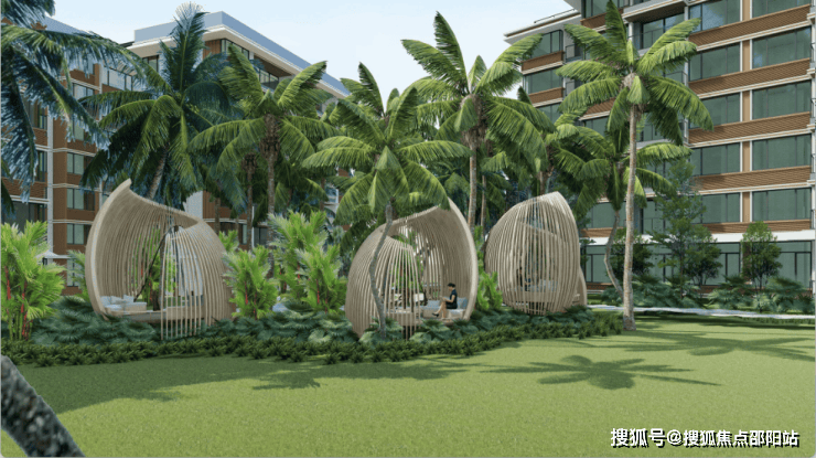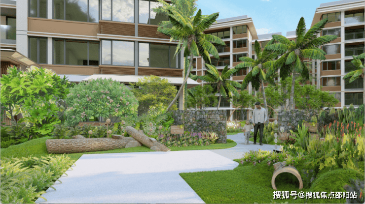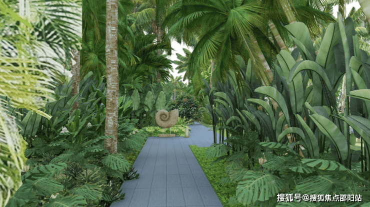 组团内曲折蜿蜒的景观轴线串联起各个组团庭院,整体简洁大气的氛围,舒适自然的花园空间,热带风情的植被设计,营造优雅舒适的海岛热带度假风情,打造高品质人居生活环境。