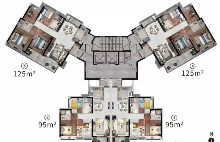 95㎡的三房和125㎡的四房
