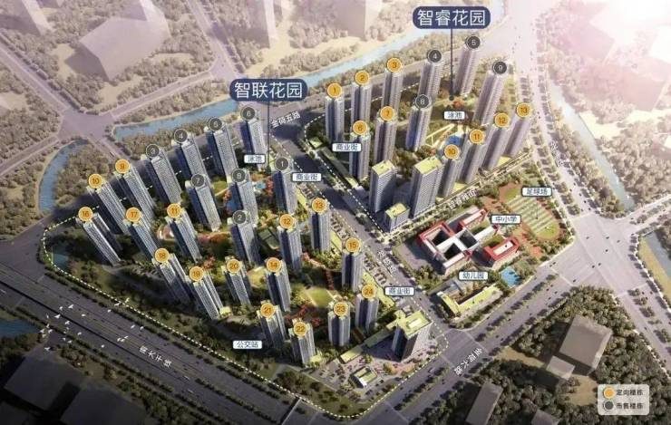 项目由四个地块组成,总共有41栋楼,其中住宅37栋、公寓4栋,以合围点式的布局,涵盖了住宅、公寓、商业及教育配套。