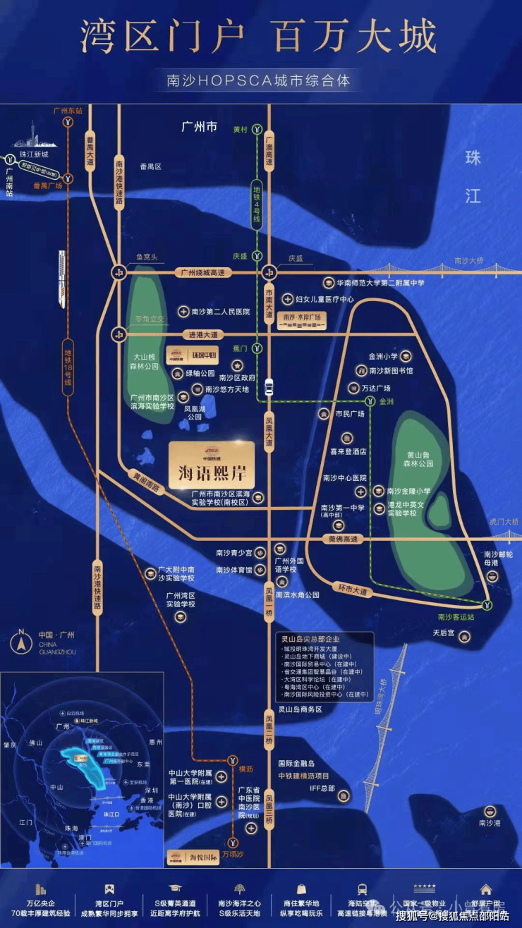【区位】项目位于南沙中芯凤凰大道 城市中轴之上,出门就是南沙新中轴“凤凰大道”,凤凰大道连接蕉门河区板块与明珠湾板块,沿线落地南沙主要的成熟市政配套,智能公交畅联地铁蕉门站与横沥站。