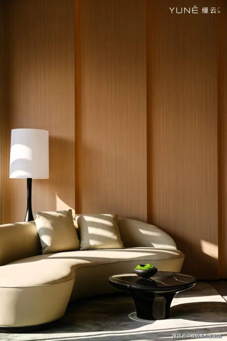 缦云的建筑立面,选择与环境相融,曲线+圆弧+云翼,如同三位艺术大师,共同谱写了一曲优雅平和的归家乐曲,轻盈而律动,在对版比色约180天的轻质铝板的相衬下,整体自在舒展,给予归家业主难得松弛的视觉享受。