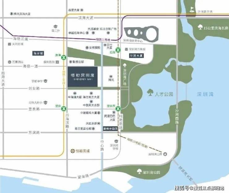交通方面:恒裕深圳湾项目距离2号、11号地铁线交汇站后海站不远,可通过11号线直达福田枢纽,快速连接粤港澳大湾区城市群,同时11号线是机场快线,可直达深圳国际机场,还有港深西部快线支线直达香港国际机场。